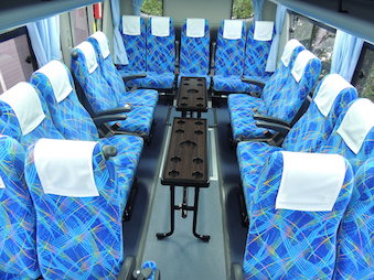 さらに、後部をテーブルで囲む人気のサロンタイプにすることで、車中で宴会など盛り上がりながらゆったりとした快適な空間をご利用いただけます。