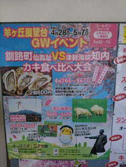 展望台ではGWイベントとして 《 釧路町仙鳳趾 VS 津軽海峡知内~カキ食べ比べ大会~ 》が行われており